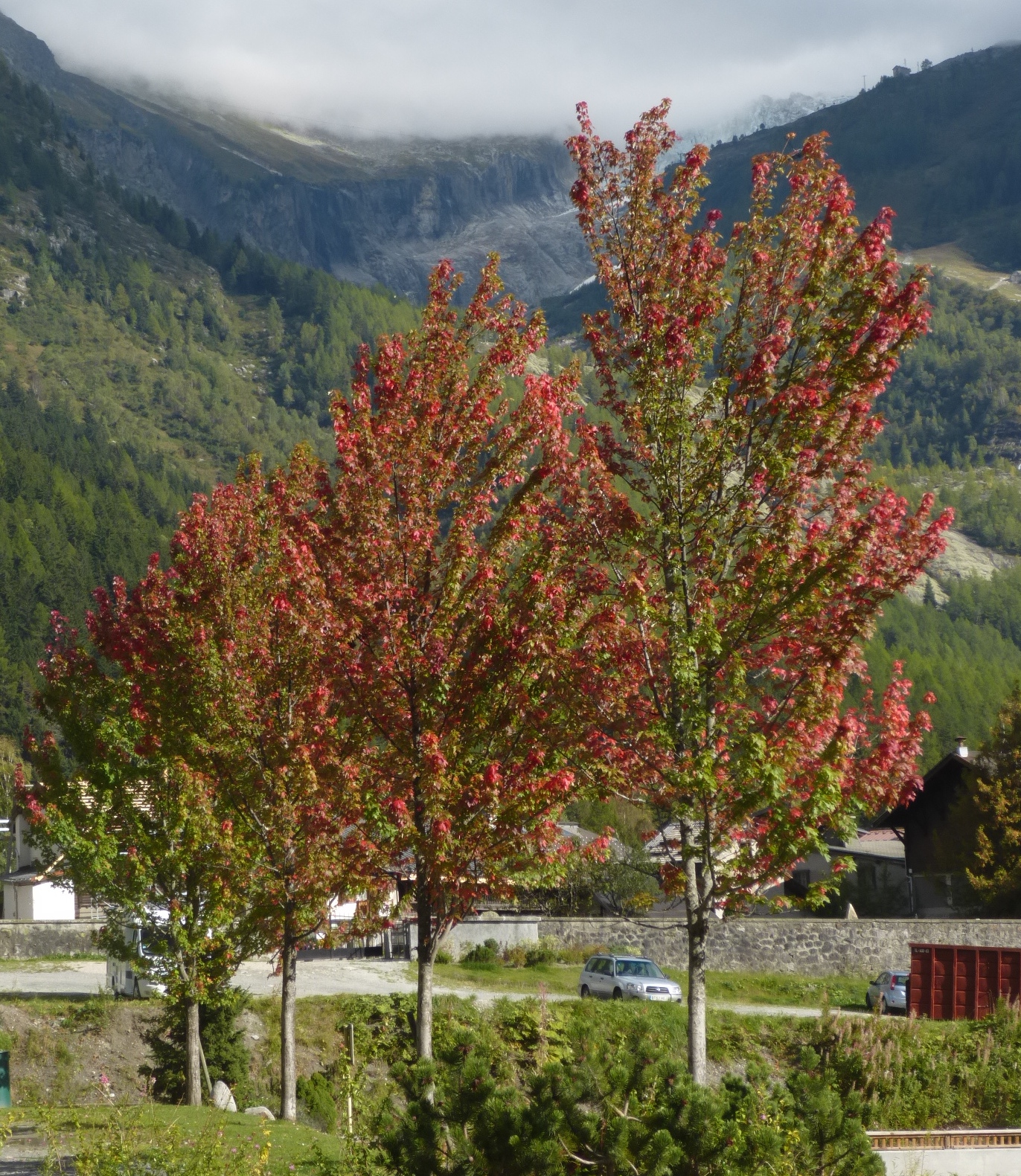 In the vein of enjoying every last drop of that sunshine, last week I went for a wonderful long run along the Chamonix valley, starting and finishing at 2 different points which resulted in a reasonably long wait for a bus at the other end. Again sitting and waiting for a bus is a prospect that conjures up images of miserable commuters huddled under a rainy bus stop. It’s a strange place to count your blessings, but I couldn’t help but smile as I sat on a bench in the sunshine facing a spectacular mountain range bisected by a stunning glacier, and to top it off, the trees in the foreground were at that perfect autumnal point where they can’t quite decide whether they want to be red or green.